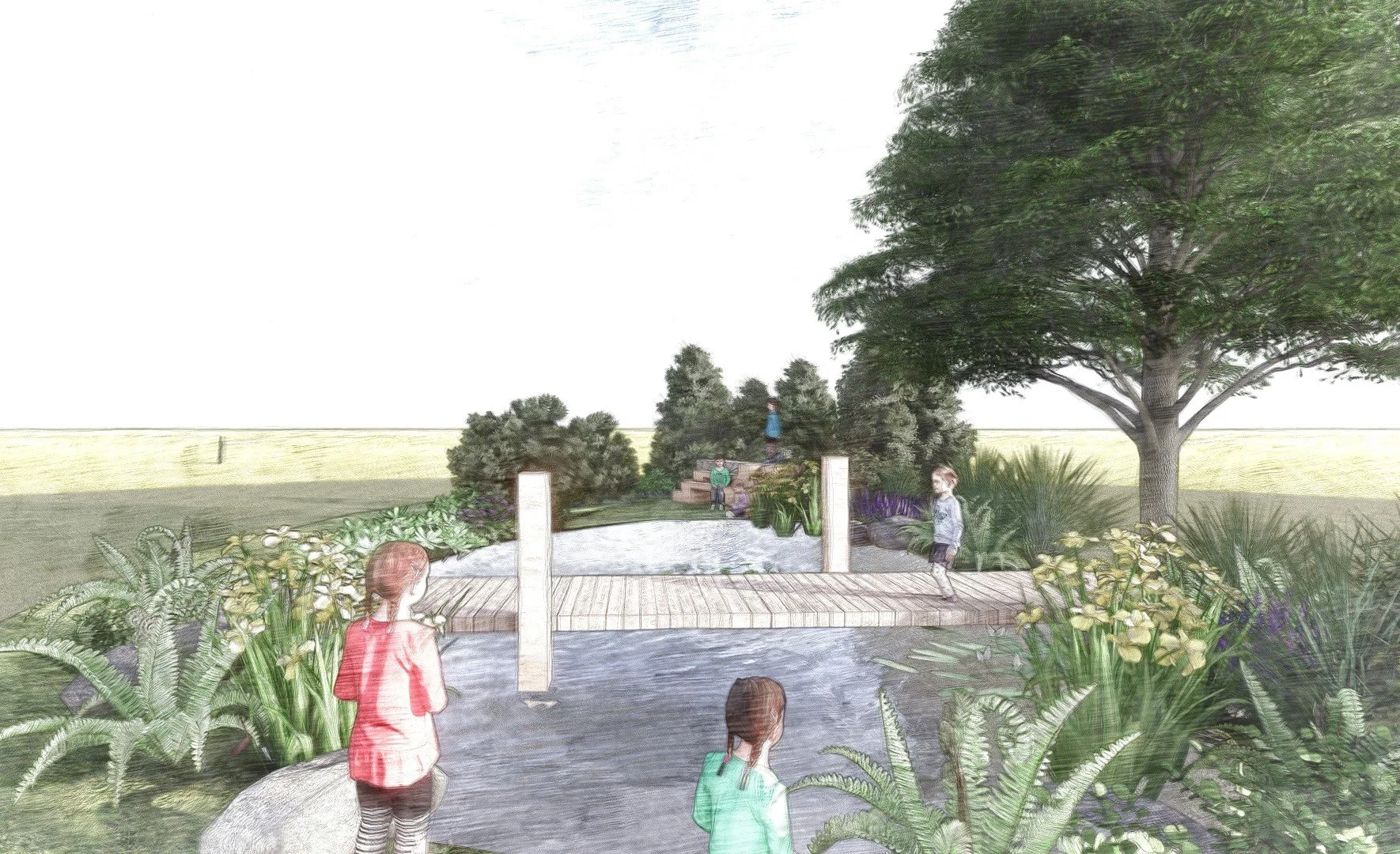 Zone Two | A bridge where children can get close to the centre of the pond and explore. It’s a great spot for pond dipping.